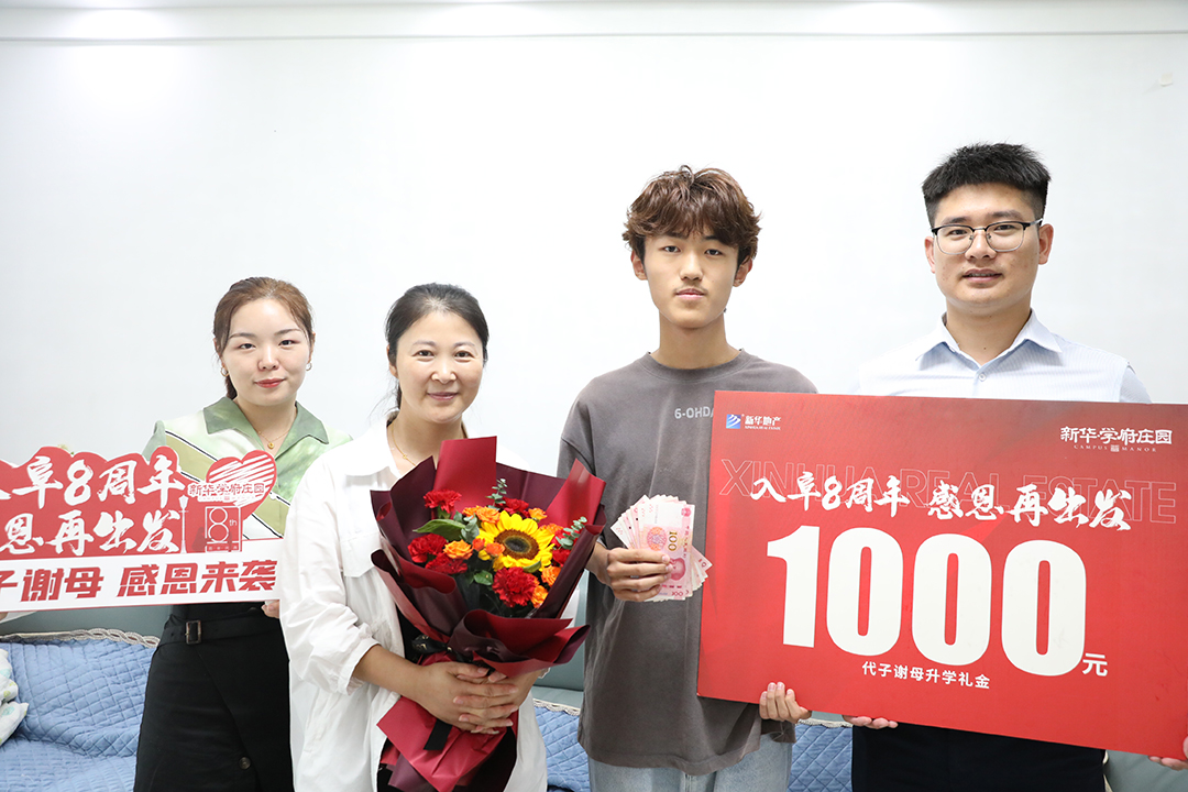 金榜题名,以礼相贺。新华地产为小业主和父母们送上鲜花以及充满祝福的升学礼金,感恩伟大父母的辛苦付出,为勇敢追梦的莘莘学子助力,预祝他们有一个美好未来。未来,新华地产将不忘初心,肩负责任与使命,与爱同行,传递温暖。