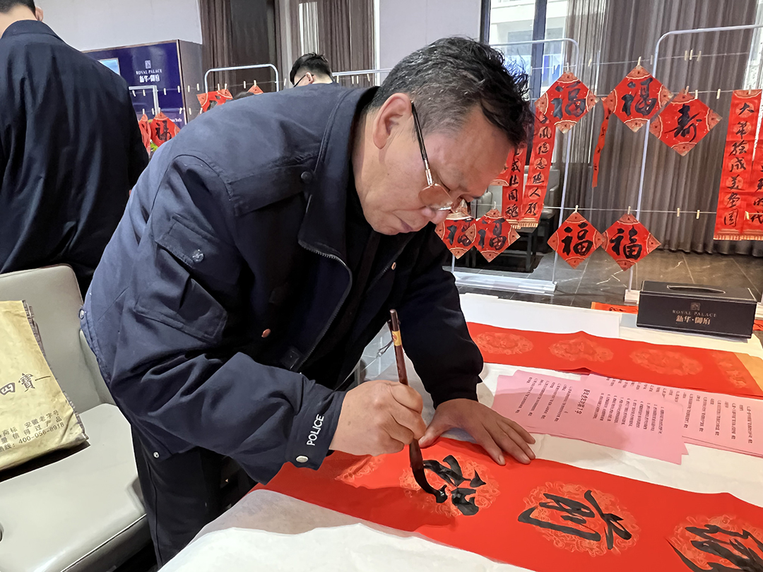 活动体验区围满了业主朋友,大家迫不及待拿起毛笔大展身手。随后,一幅幅飘散着清新墨香、寓意吉祥的春联新鲜出炉,将浓浓年味烘托的淋漓尽致。本次活动不仅为大家送上节日的祝福,更是融合了邻里的和谐关系,让大家在红红火火的年味中感受到传统文化的独特魅力。一副春联,一张福字,红底黑字间承载的是满满祝福,更是对美好生活的祈愿。
