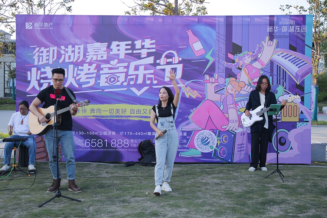傍晚的微风拂过,徐徐翻开新华·御湖庄园烧烤音乐节的序幕。现场特邀乐队歌手、小提琴演奏手激情助阵,一首首劲爆的摇滚曲,醉人的嗓音让这个夜晚愈加沉醉,燃爆初夏的激情,享受一场精彩绝伦的视听盛宴。