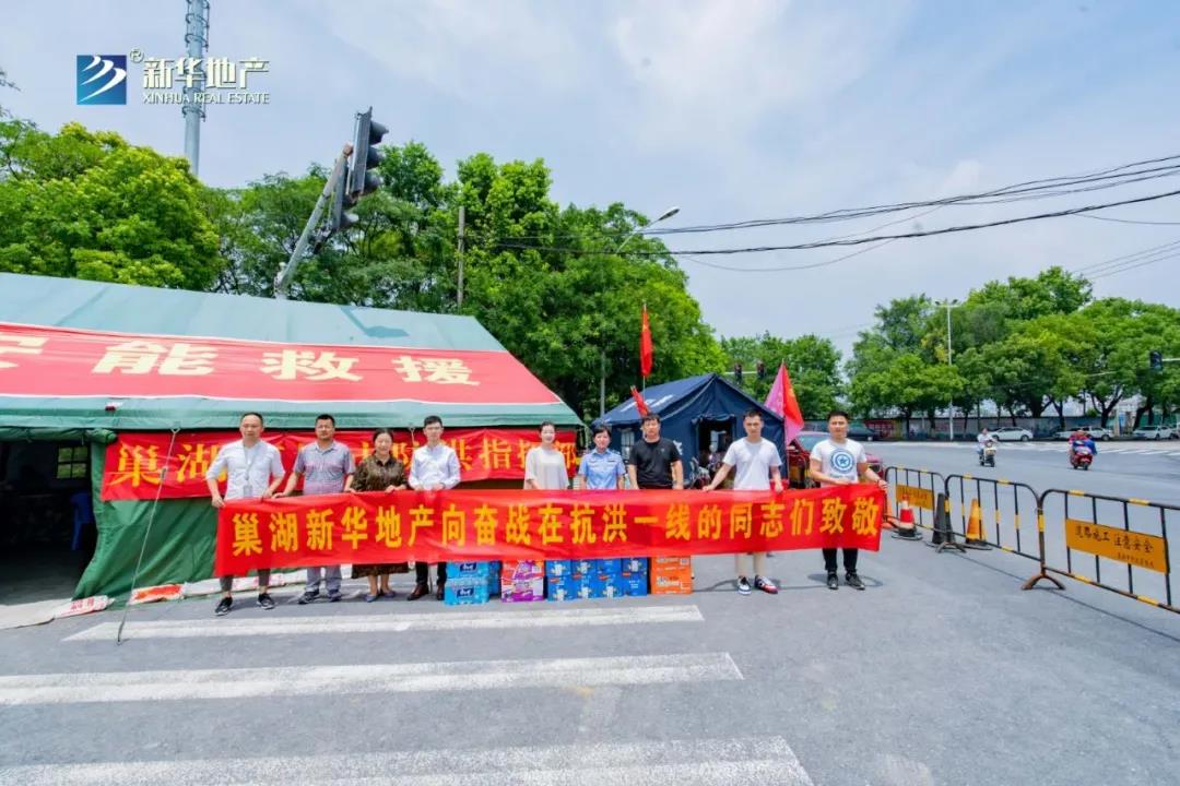 2020年7月20日上午,巢湖新华地产组织抗洪救灾应急小组,火速集结方便面、牛奶、面包、矿泉水等大批应急物资,紧急送往巢湖抗洪救援指挥部西坝口、以及奋战在抗洪一线的工作人员。